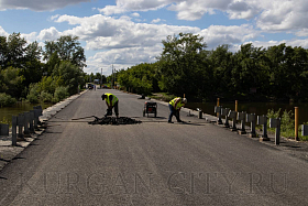 По информации Управления дорожного хозяйства и благоустройства города Кургана, в настоящее время ремонтные работы на Мало-Чаусовском мосту находятся в финальной стадии. Рабочие подрядной организации в ходе ремонта провели уборку мусора на мостовом сооружении, выполнили работы по устройству дорожной одежды. В настоящее время проводятся работы по восстановлению перильного ограждения мостового сооружения.
