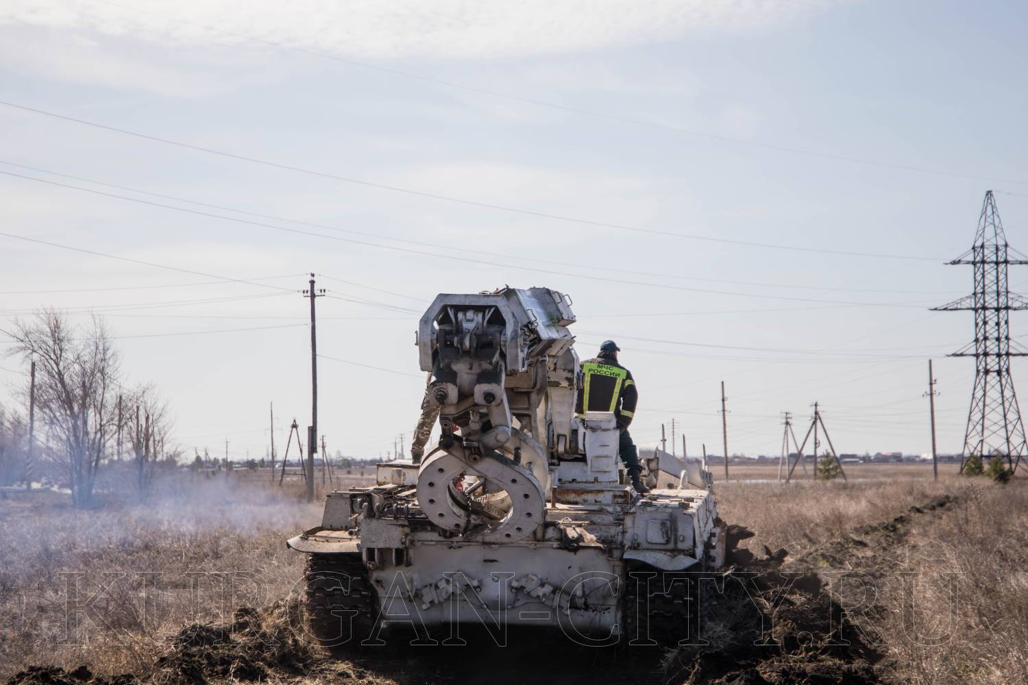 К работе по опашке микрорайонов в Кургане приступила инженерная машина разграждения