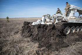 - Основное преимущество данной машины — это её ходовая база, основанная на базе танка Т-72, что позволяет ей проводить работы в труднодоступных участках местности. В случае возникновения какой-либо угрозы и ландшафтного пожара данная машина может быть оперативно переброшена на этот опасный участок для создания минерализованных полос, - пояснил Александр Витальевич.