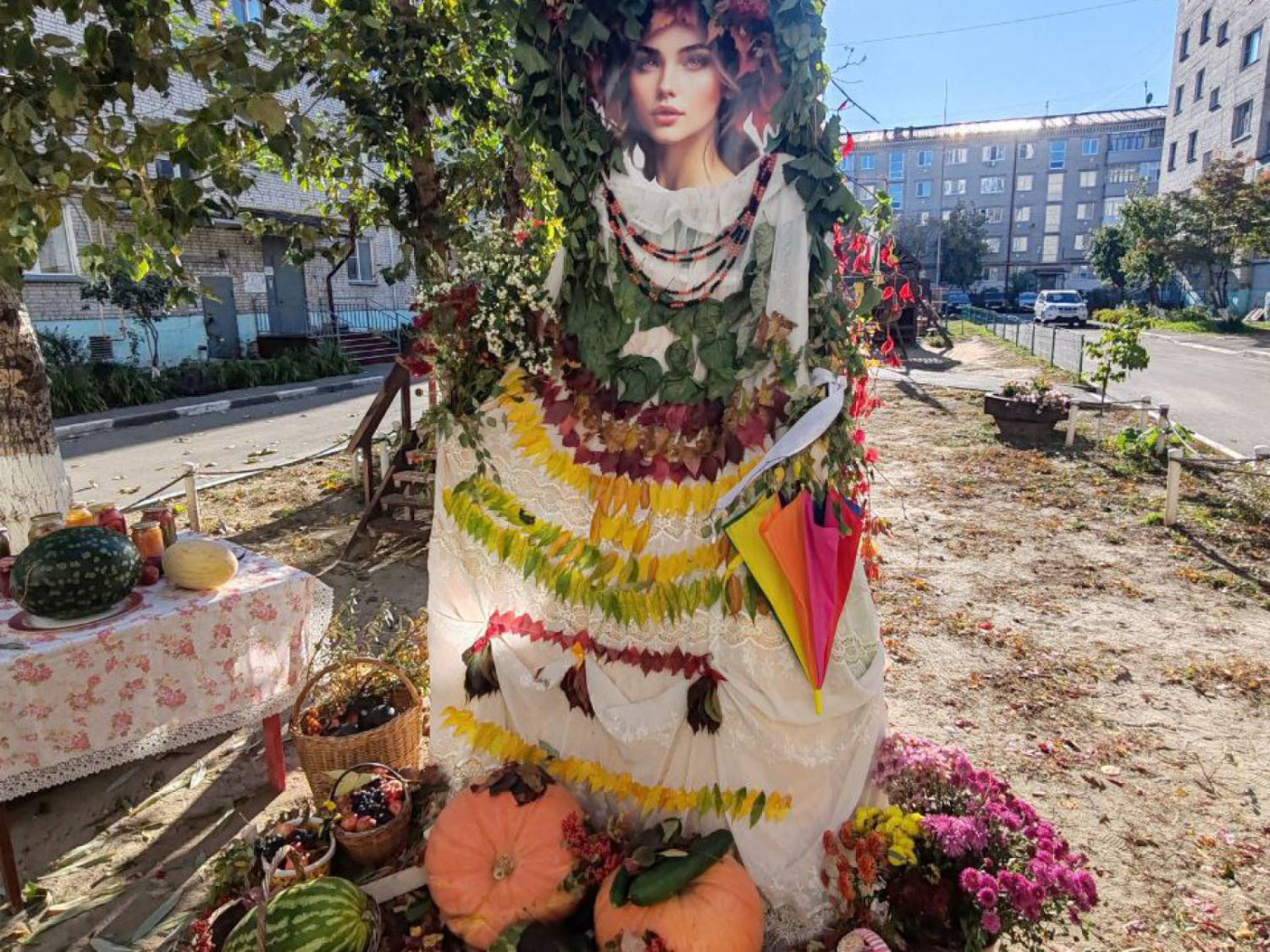 С выдумкой и фантазией участники конкурса подошли к изготовлению чучела куклы-осени. К примеру, в ТОС «Тихоновка» кукла-осень символизируется с дарами осени. Кукла изготовлена из каркаса высотой 2,5 метра и украшена листьями и другим природным материалом. Ростовую куклу в ТОС «Благодатный» изготовили жители дома № 44 по ул. Аргентовского. В ТОС «Орбита» ростовая кукла имела интересную деталь в своем образе – букет роз, изготовленный из алых атласных лент.