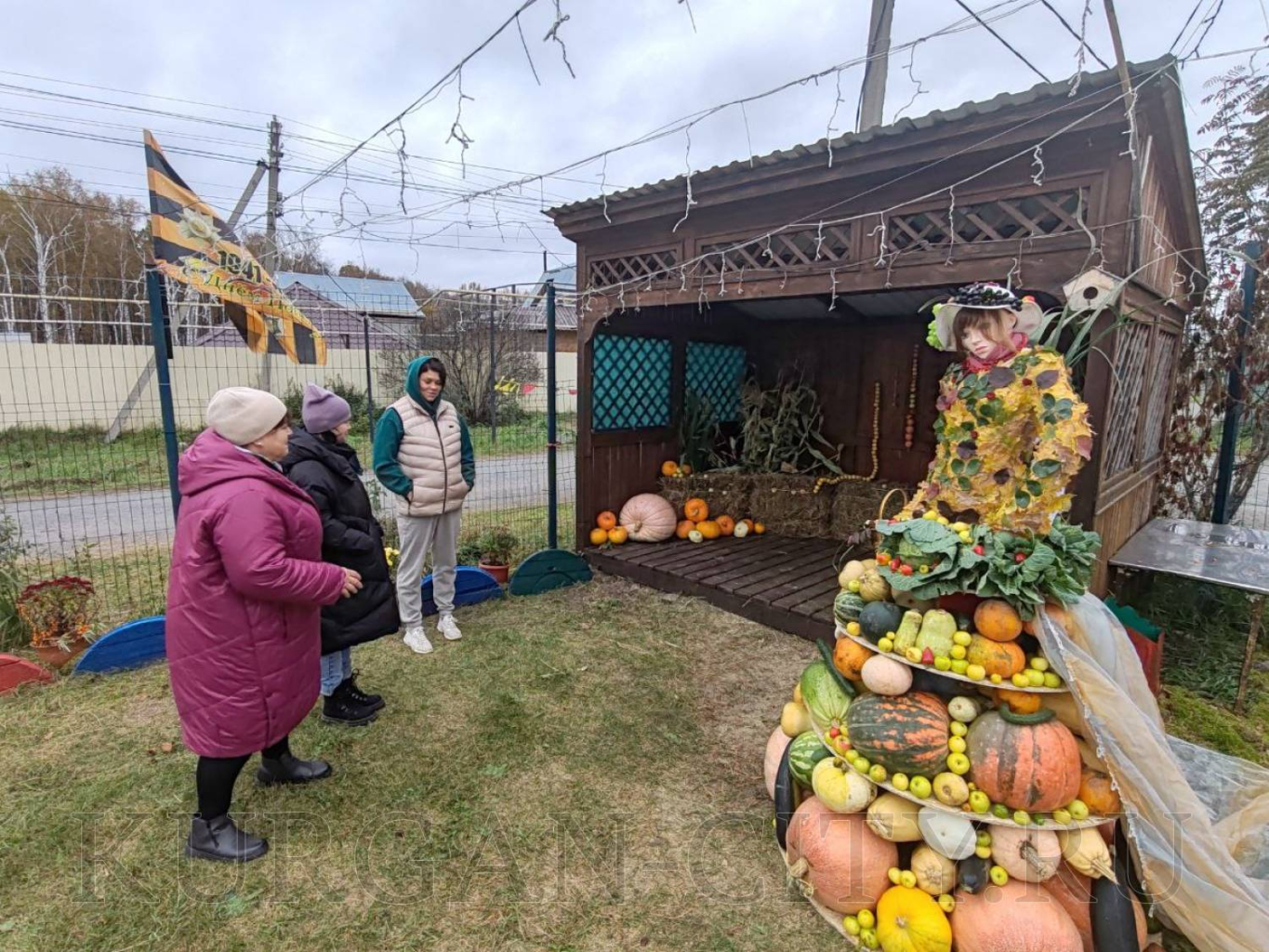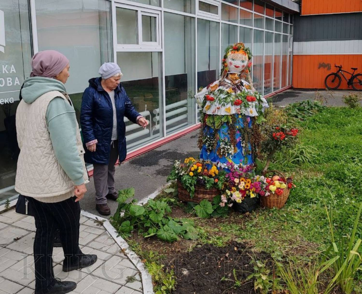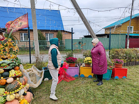 В ТОС «Рябково» жители установили ростовую куклу «Марфуша» с её урожаем.