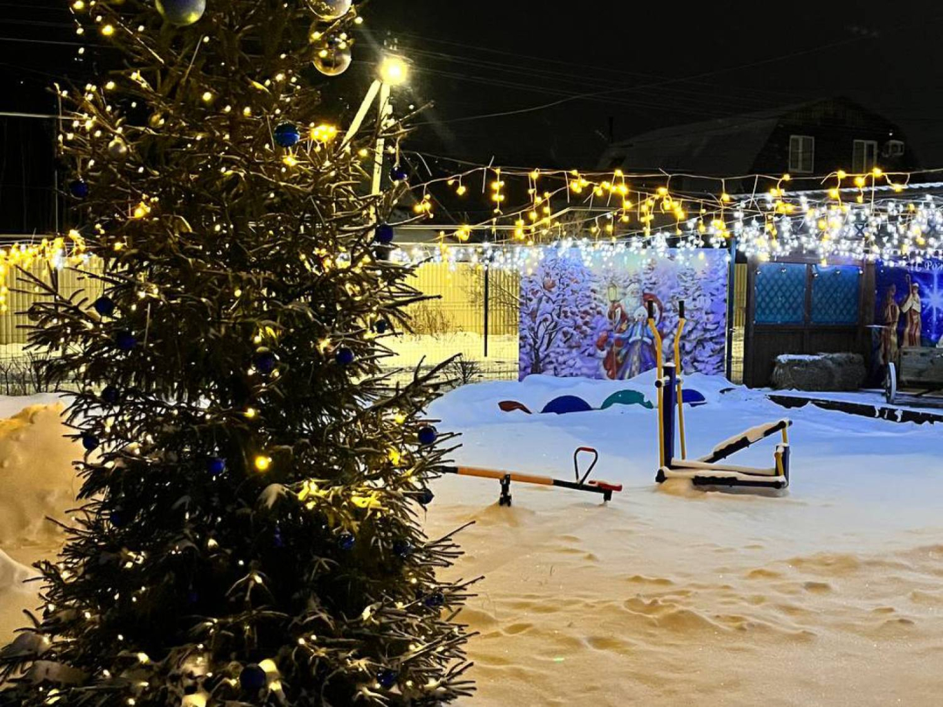 ТОС «Радужный поселок» ежегодно украшает рождественский вертеп, имитируя пещеру, с помощью еловых веток, гирлянд и персонажей. Горожане придумывают каждый год новые композиции для украшения. В этот раз уже появились купель, люлька, неподалеку расположилась фотозона.