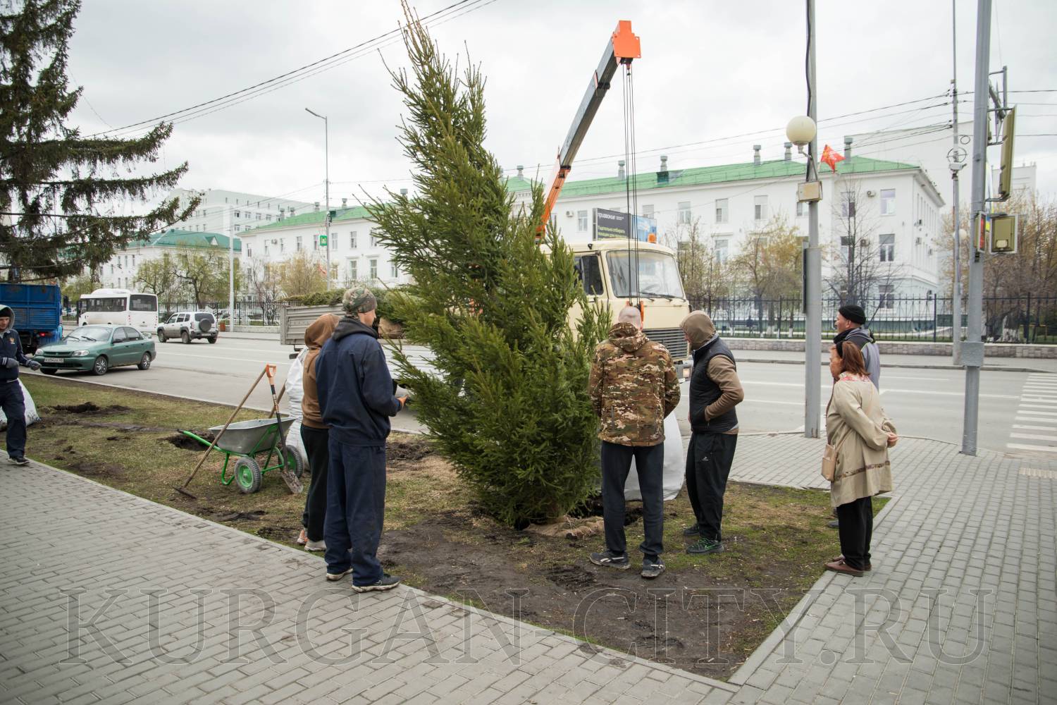 В Кургане в рамках программы по озеленению города началась посадка деревьев в скверах и парках, вдоль улично-дорожной сети. Так, сегодня были высажены молодые здоровые ели вдоль аллеи, расположенной по улице Гоголя.