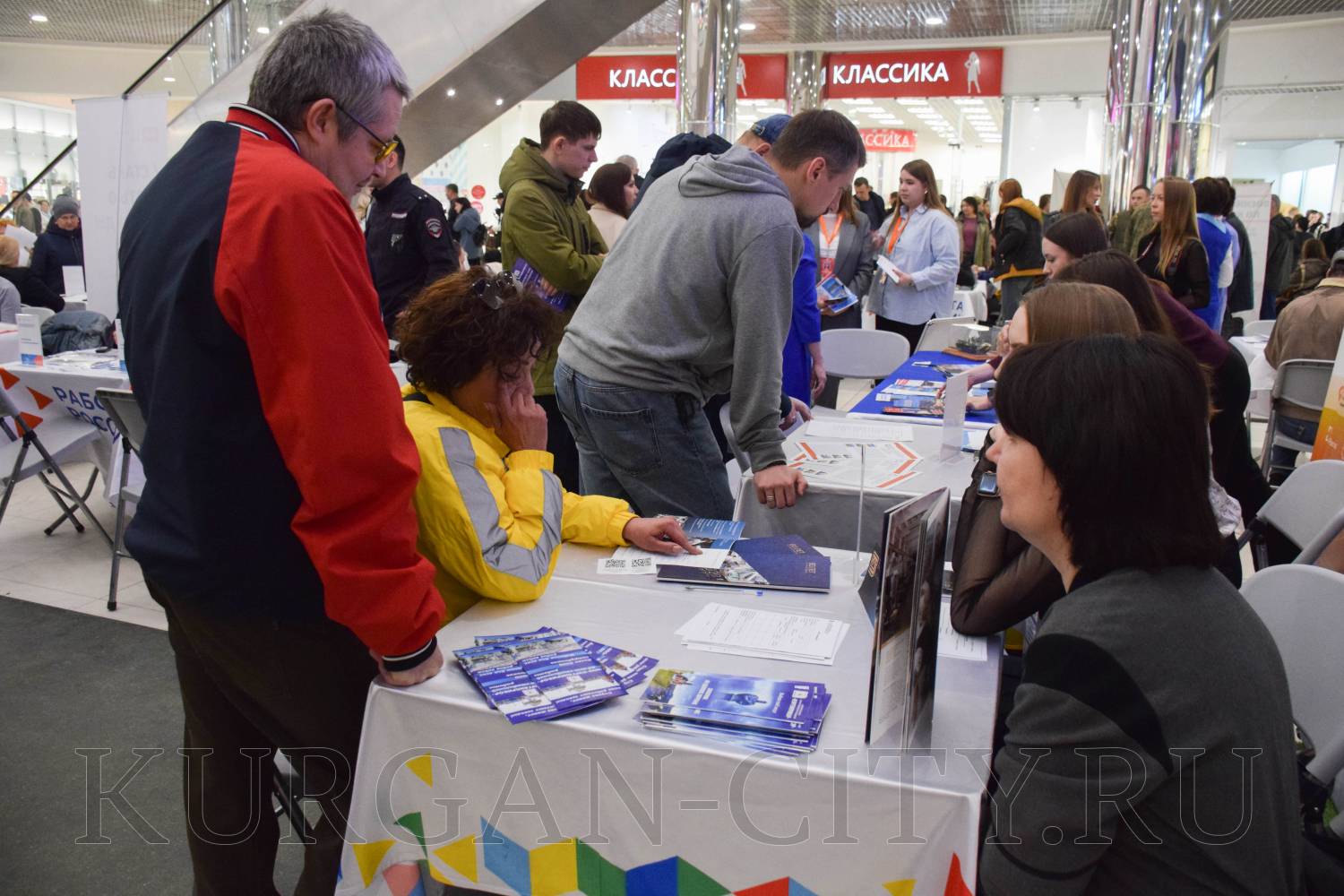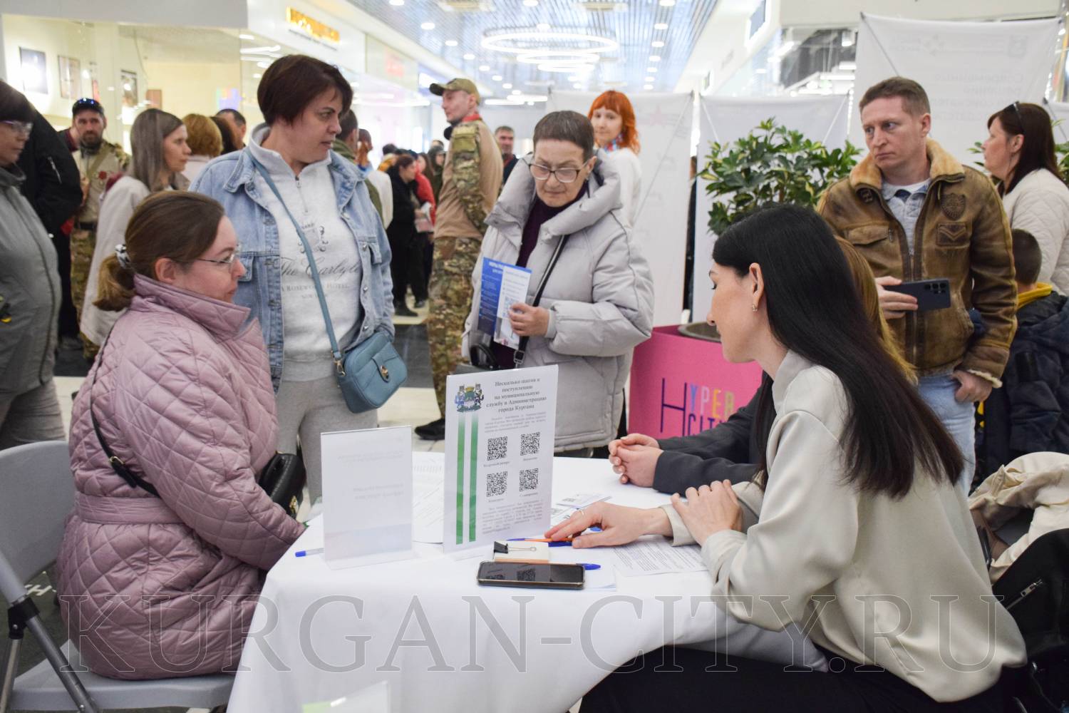 Сегодня в Кургане в рамках регионального этапа Всероссийской ярмарки трудоустройства «Работа России. Время возможностей» прошла ярмарка вакансий предприятий Кургана и Курганской области. Мероприятие было организовано на площадке торгово-развлекательного центра «ГиперСити». Свои вакансии предложила и администрация города Кургана.