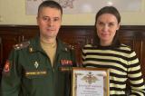 Военный комиссар Курганской области Айрат Зарипов вручил Благодарственное письмо депутату Курганской городской Думы Анастасии Романович.