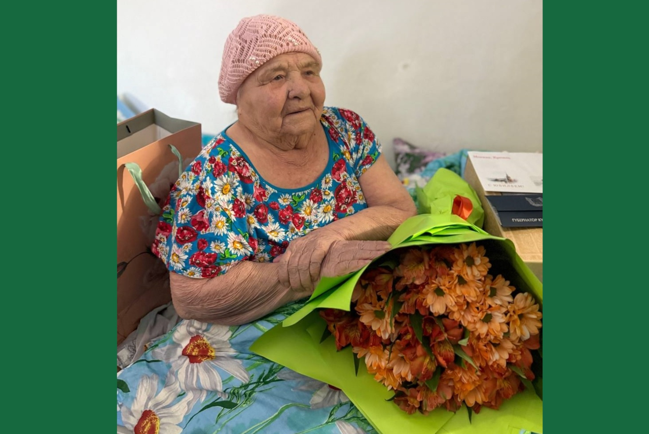15 октября вековой юбилей отметила труженица тыла Клавдия Ивановна Кузменкина. Депутаты Курганской городской Думы Алла Мирская и Александр Маклыгин передали юбиляру свои поздравления, цветы и подарок.