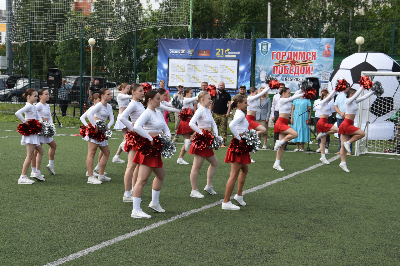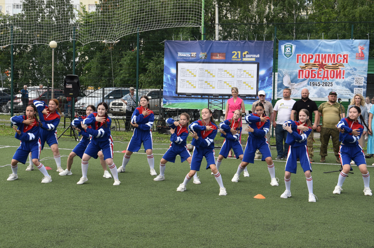 Перед командами и гостями церемонии открытия турнира выступили коллективы по фитнес - аэробике городских ДЮСШ и студий танца. В этом году ХХI -ый открытый турнир по дворовому футболу на Кубок Курганской городской Думы посвящен Году Защитника Отечества. Голосованием зрителей, болельщиков и любителей футбола гимном турнира была выбрана песня «Катюша», которая прозвучала в исполнении Ирины Цыплухиной.