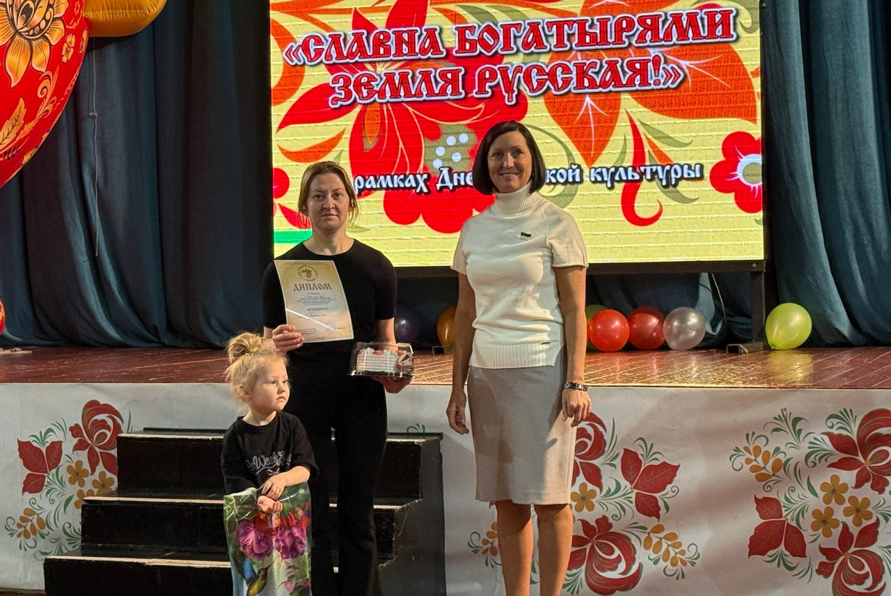 В Центре культуры и досуга «Спутник» подвели итоги открытого городского фестиваля народного творчества «Славна богатырями земля русская!», который прошел в рамках Дней русской культуры. Участие в церемонии награждения победителей фестиваля приняла депутат Курганской городской Думы Елена Рыбакова.